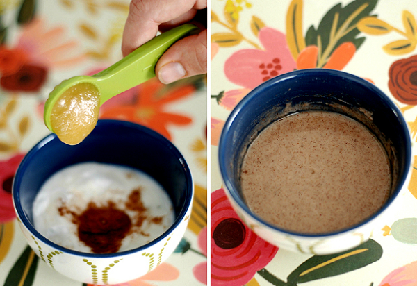 Wszystkie składniki dodaj do miski i wymieszaj całość na gęstą masę. Maseczkę należy nakładać na umytą skórę twarzy i szyi. Pamiętaj, aby unikać kontaktu tureckiej maseczki z oczami i ustami.
