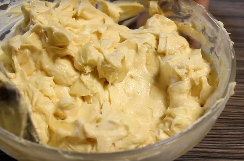 Mieszamy łyżką. Włączamy piekarnik, aby się powoli nagrzewał i przystępujemy do wykonania ciasta. Miękkie masło, wcześniej wyjęte z lodówki ucieramy np. mikserem, po chwili dodajemy cukry i sól i ucieramy dalej.