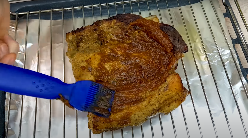 Gotuj, aż utworzy się gładka masa. Upieczone mięso odwiń z folii i posmaruj przygotowaną marynatą ze wszystkich stron.