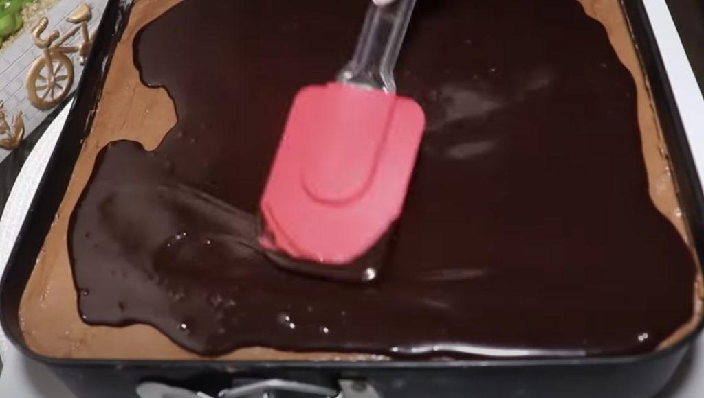 W rondelku doprowadź do wrzenia śmietankę i czekoladę. Gdy polewa będzie gotowa, wylej ją na ciasto. Pozostaw do ostygnięcia. Następnie włóż ciasto do lodówki na ok. 2 godziny. Gotowe.