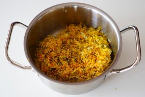 Następnego dnia przecedzamy płyn przez sitko i dobrze odciskamy, tak by cała woda spłynęła do drugiego naczynia. W razie potrzeby możemy sprawdzić, czy mamy 500 ml ekstraktu. Wtedy możemy przejść do kolejnego etapu.