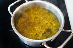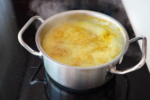 Zaczynamy gotować wywar. Kiedy utworzy się piana, ściągamy ją łyżką i gotujemy dalej, aż do uzyskania wymaganej gęstości.