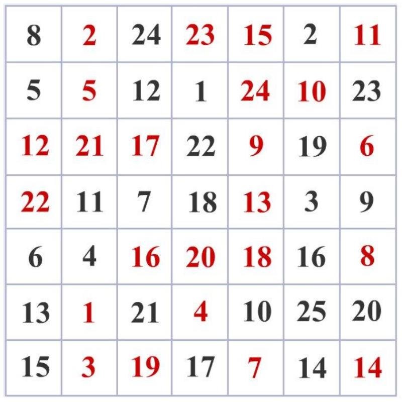 Twoim zadaniem jest znalezienie liczb w kolejności od 1 do 25 oraz wypowiedzenie ich na głos, Pamiętaj, aby cały czas skupiać wzrok na środku stołu, ponieważ w tym ćwiczeniu wykorzystujesz widzenie peryferyjne.