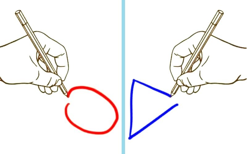 Przygotuj dwa arkusze papieru oraz coś do pisania np. ołówek, kredki. Następnie narysuj obiema rękami różne figury geometryczne np. lewą ręką narysuj prostokąt, a prawą trójkąt.