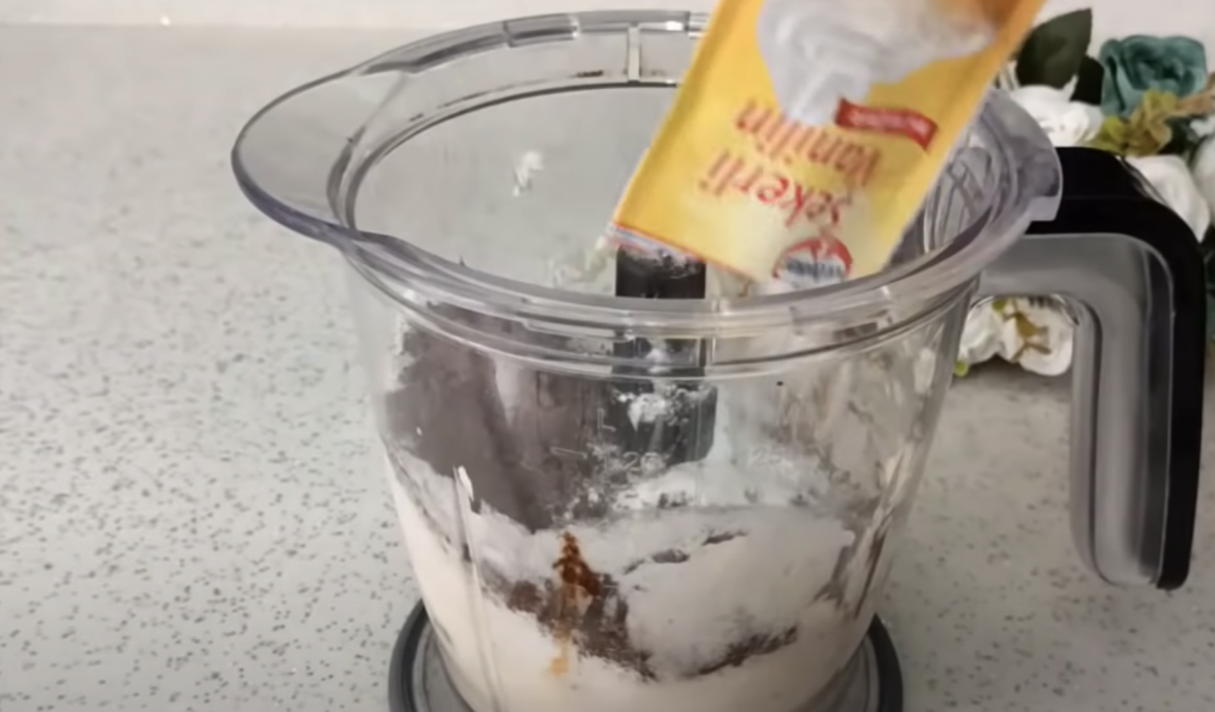 Dodaj melasę lub miód oraz kakao, jogurt i wiórki kokosowe. Na koniec dodaj wanilię, proszek do pieczenia i wszystko wymieszaj, do uzyskania gładkiej masy.