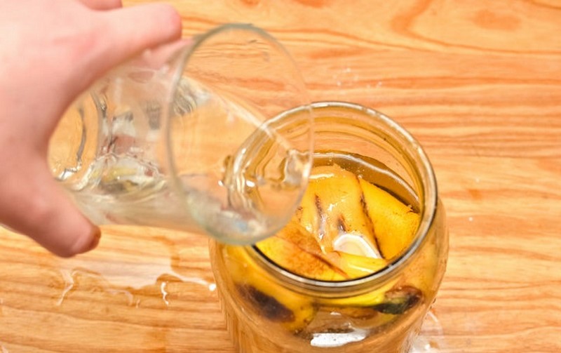 Skórkę z dwóch bananów zalać dwoma litrami wody, po upływie dwóch dni przecedzić. Odcedzoną ciecz rozcieńczyć wodą w proporcjach 1:1. Specyfikiem podlewać korzenie storczyka. Skórki z banana można też używać do przecierania liści, by wydobyć z nich piękny blask.
