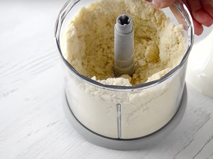 Połącz ze sobą mąkę, masło, cukier i szczyptę soli tak, aby uzyskać masę na ciasto. Wymieszaj za pomocą dłoni lub blendera.