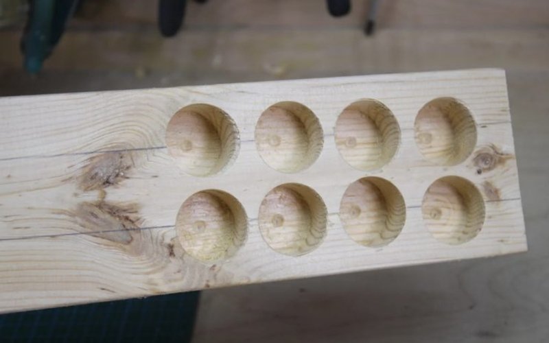 Weź deskę, wiertło forstnera, suwmiarkę (albo taśmę) i ołówek. O, i młotek!