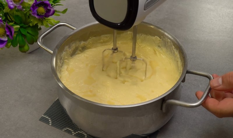 Wyciągamy krem z jajek i ubijamy go mikserem w ten sam sposób.