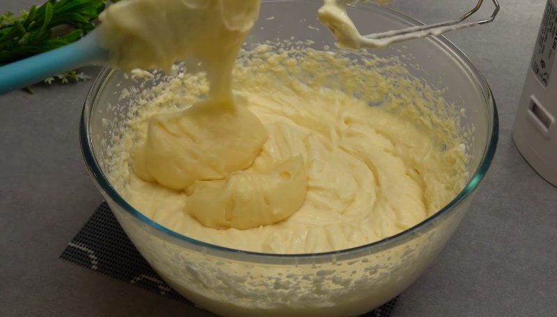 Dwie przygotowane mieszanki mieszamy, ubijając wszystko stopniowo mikserem.