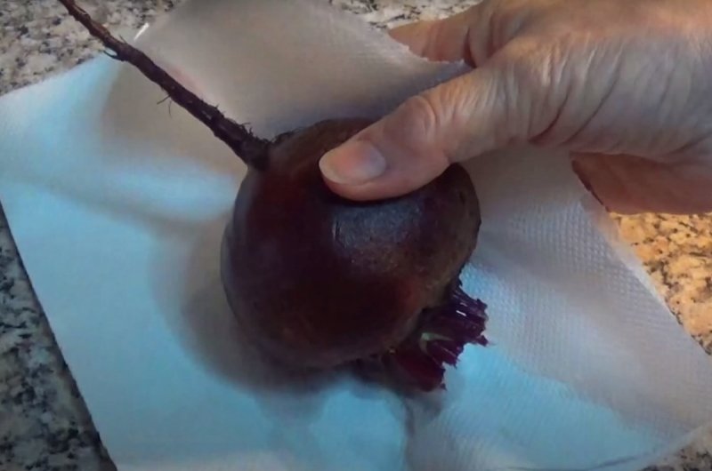 Zacznij od przygotowania buraków – dokładnie je umyj pod strumieniem bieżącej wody przy użyciu szczotki lub gąbki. Następnie osusz je ręcznikiem papierowym i odetnij końce.