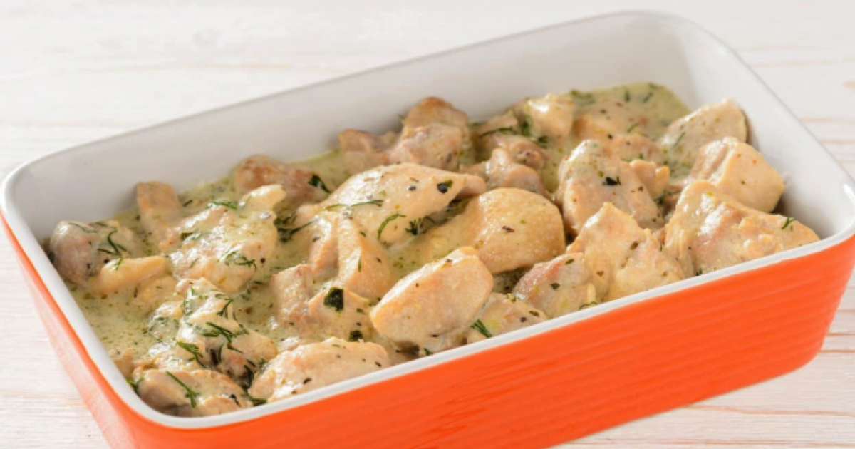 Umyj piersi z kurczaka, a potem je osusz. Pokrój mięso na małe kawałki. Natłuść żaroodporne naczynie, włóż do niego kawałki mięsa i dopraw do smaku.
