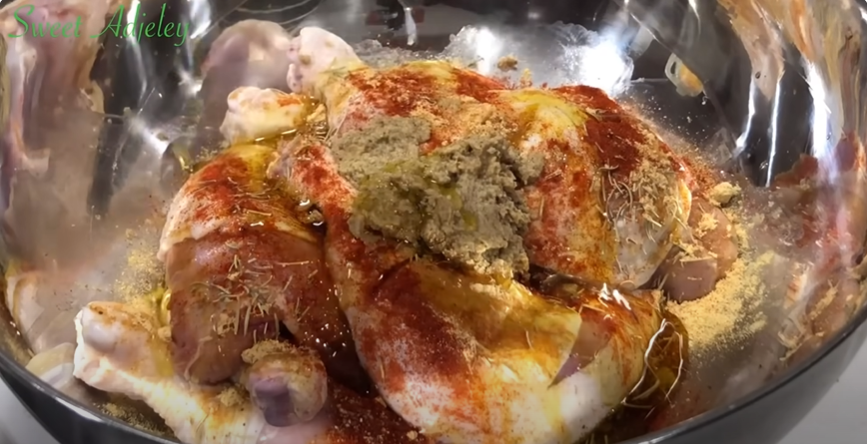 Umyj i osusz udka z kurczaka, a następnie naciń skórę, aby lepiej wchłonęły przyprawy. W misce wymieszaj rozmaryn, przyprawę do kurczaka, słodką paprykę, pokruszone kostki bulionowe i 2 łyżki oliwy z oliwek. Dodaj udka kurczaka i dokładnie wymieszaj, aby przyprawy równomiernie pokryły mięso. Odstaw na co najmniej 30 minut, a najlepiej na całą noc, aby mięso dobrze się zamarynowało.