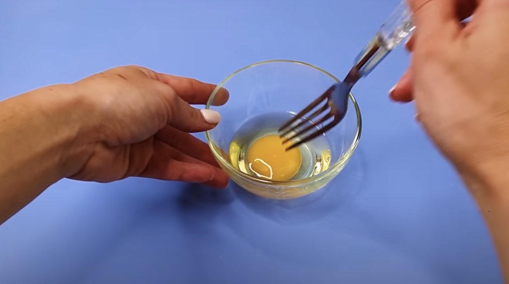 W międzyczasie do miseczki wbij jedno jajko i dokładnie je roztrzep.