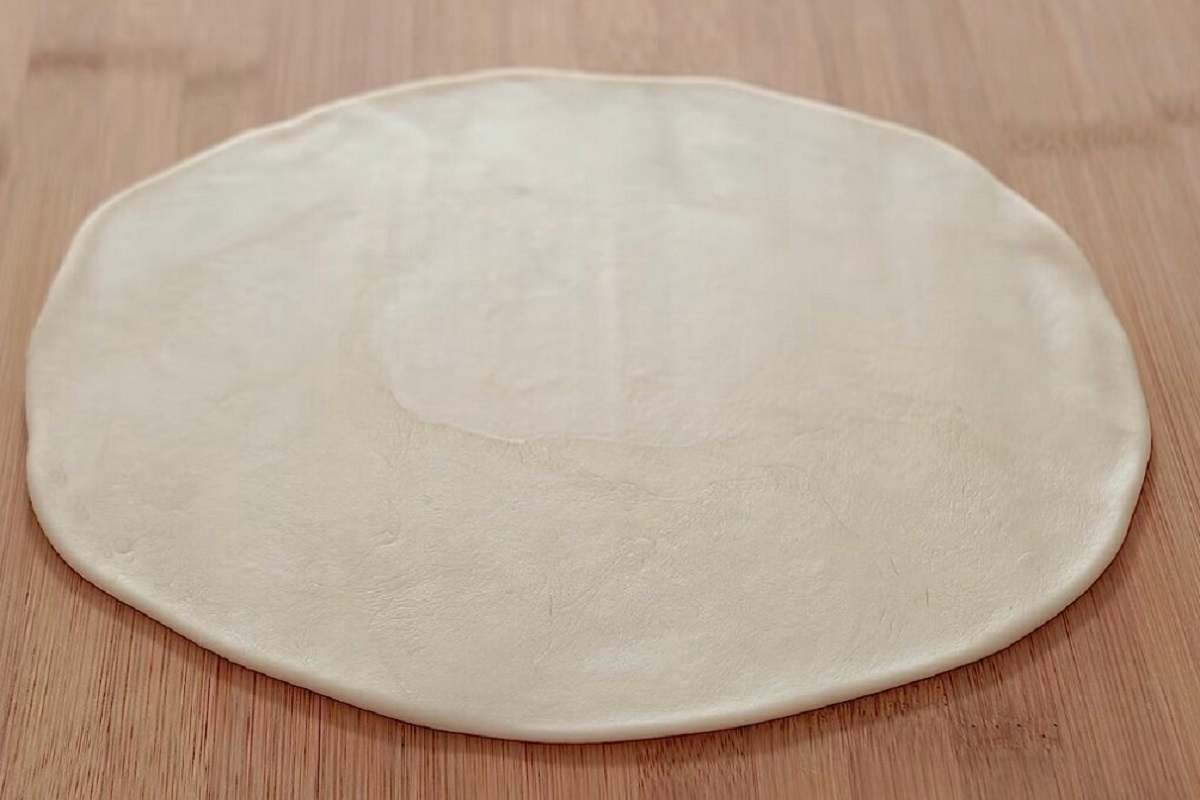 Teraz przyszła kolej na połączenie brzegów ciasta. Gdy ciasto zostanie sklejone, należy delikatnie rozwałkować uformowany placek.