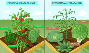 Podstawowa zaleta zasadzenia czosnku wraz z pomidorami to pewna ochrona przed inwazją mszyc. Czosnek zawiera duże stężenie siarki, za którą nie przepadają też inne działkowe szkodniki. Czosnek „lubi się” też z burakami, selerami, ziemniakami, sałatą, truskawkami, drzewkami owocowymi i różami. Inne warzywa, które dobrze „dogadują się” z pomidorami to z kolei papryka oraz szparagi.