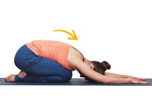 Uklęknij (usiądź na piętach), rozstaw kolana na szerokość bioder. Połóż dłonie przed sobą, następnie przesuwaj je coraz bardziej do przodu, aż głowa znajdzie się przy samej podłodze. Rozluźnij się, wytrzymaj 1-2 minuty. Pozycja ta wzmacnia mięśnie kręgosłupa, pomaga się rozluźnić, uspokaja.