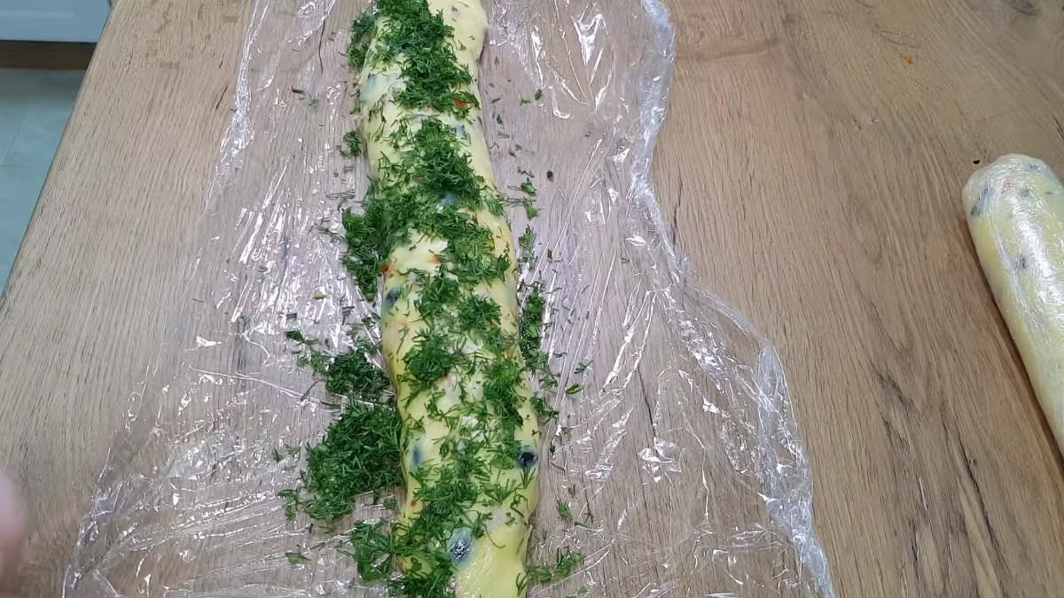 Przełóż masę na folię spożywczą i uformuj w taki sposób, aby powstał rulon. Zwiąż brzegi. Możesz także podzielić przygotowany twaróg na dwie części i ułożyć na inne sposoby np. jedną z nich posypać ziołami.