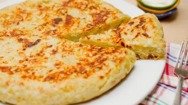 Oliwa musi zakrywać warzywa. Smażyć dopóty, dopóki ziemniaki będą miękkie. Jajka wymieszać na gładką masę i wylać je na patelnię aż się nie zetną. Smażyć z obu stron. Smacznego!