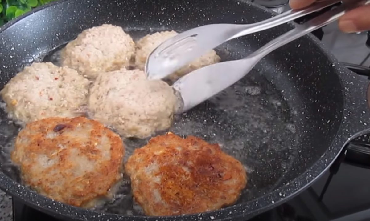 Z przygotowanej masy należy uformować nieduże kotlety i smażyć na oleju, na wcześniej rozgrzanej patelni. Nadmiar tłuszczu można usunąć papierowym ręcznikiem.