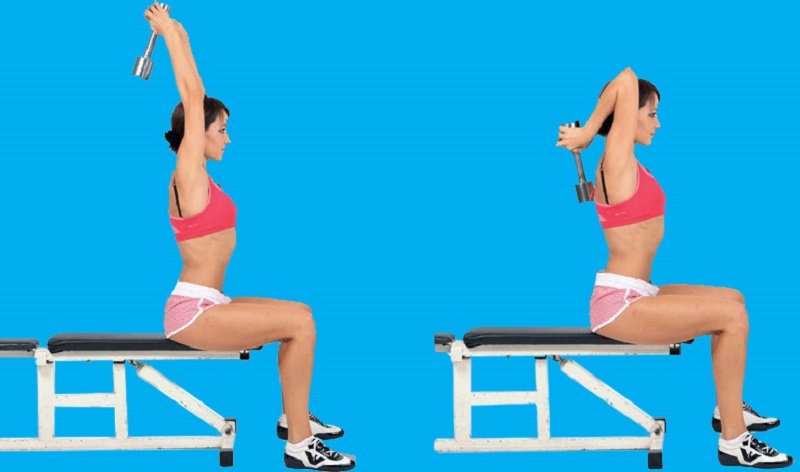 Rękę z obciążnikiem wyprostuj nad głową, następnie zginaj rękę tak, by trzymany przedmiot znalazł się za twoją głową. Pamiętaj, że zgięcie w łokciu musi mieć 90 stopni. Powoli prostuj rękę. Wykonaj 15 powtórzeń po 3 razy na każdą rękę. Dzięki temu ćwiczeniu rozciągniesz mięśnie ramion, a także wzmocnisz mięśnie przykręgosłupowe.