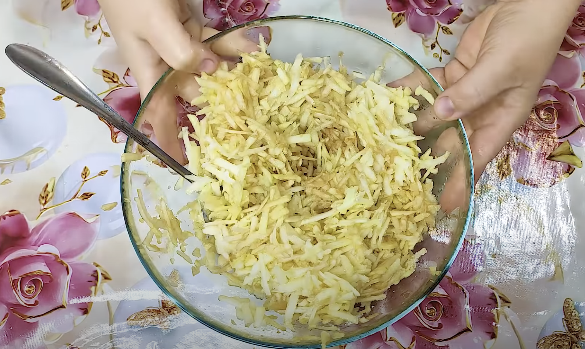 Kładę starte 4 jabłka na blaszce, zalewam ciastem, zwijam. Oto najlepsze ciasto z jabłek. Robię je co tydzień