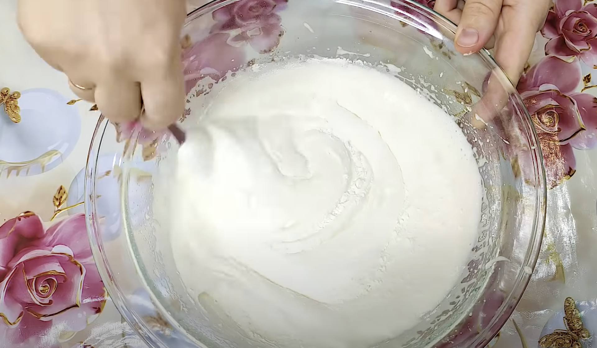Wrzuć do miski jajka i cukier. Dokładnie wymieszaj. Dodaj wanilię. Porem wymieszaj ręcznie uprzednio przesianą mąkę z proszkiem do pieczenia.