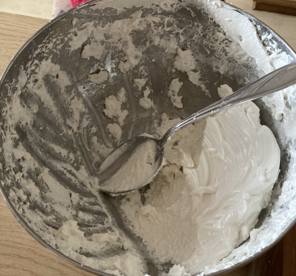 Powoli dodawaj rozpuszczony cukier do białek. Kontynuuj ubijanie. Przed napełnieniem kremu włóż go na kilka chwil do lodówki. Umieść krem w worku do dekoracji. Rozprowadź krem równomiernie na całej długości rurki.