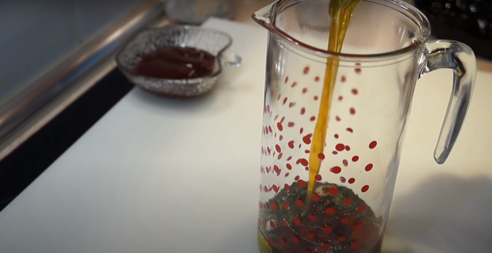 Przygotuj marynatę łącząc składniki: czosnek, tymianek, natkę pietruszki, soki owocowe oraz oliwę z oliwek. Dodaj przyprawy i sos sojowy.