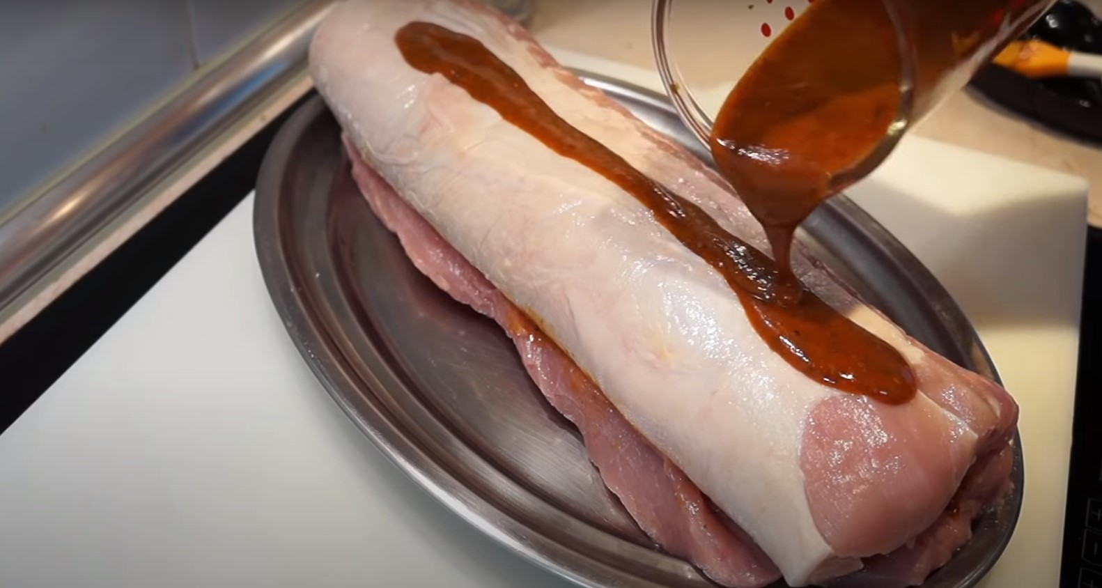Posmaruj 1/3 marynaty na schabie i rozsmaruj.