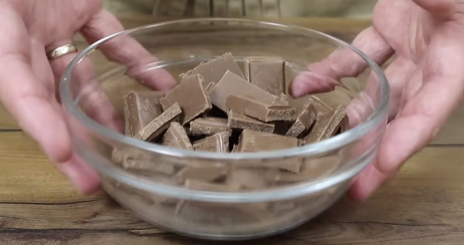Czekoladę należy połamać i rozpuścić w kuchence mikrofalowej lub kąpieli wodnej.