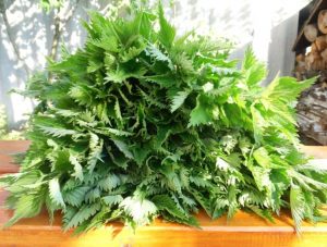 - 5 pełnych łyżek drobno posiekanych liści pokrzywy – suszonych lub świeżych,
