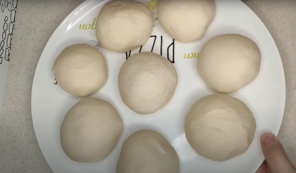 Następnie przenosimy ciasto na powierzchnię roboczą i dzielimy na 8 w przybliżeniu równych części. Z każdej części uformować kulkę.