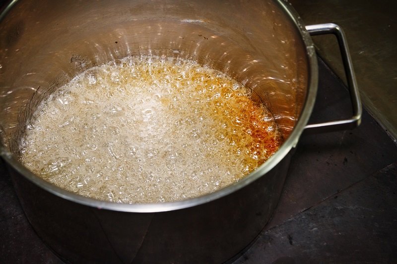 Doprowadzamy do wrzenia i do tak przygotowanego syropu wkładamy śliwki. Na zmniejszonym ogniu gotujemy je półgodziny. Po tym czasie śliwki wyciągamy, a syrop nadal zostawiamy na ogniu i pamiętamy o systematycznym mieszaniu. Gdy tylko zgęstnieje, zostawiamy syrop do ostygnięcia.