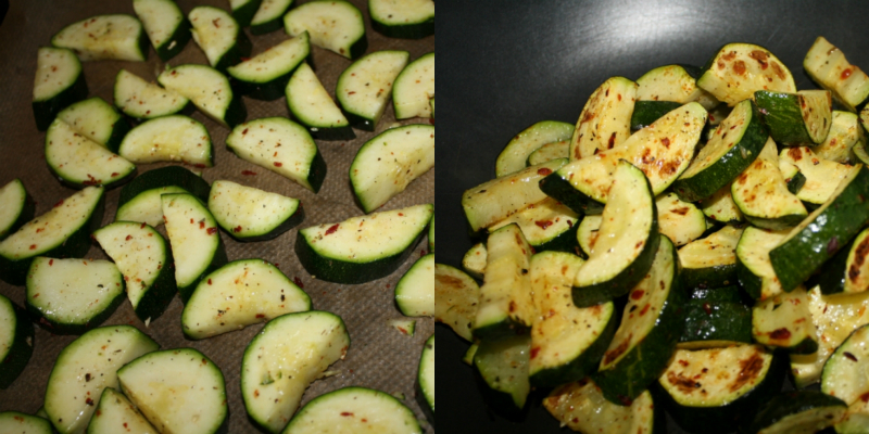 W misce wymieszaj olej z ziołami, papryką oraz solą i pieprzem. Cukinię należy pokroić w pół pierścienie. Cukinie przełóż do woreczka, dodaj olej z przyprawami i wszystko dokładnie rozprowadź po cukinii.