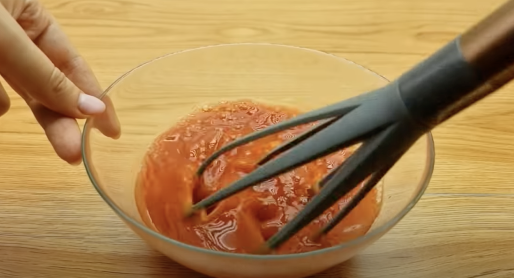 Wymieszaj dobrze koncentrat pomidorowy z wodą i przyprawami, a następnie polej nim składniki.