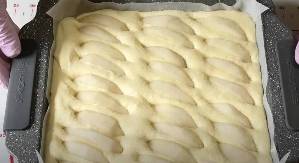Blachę do pieczenia wyłóż papierem. Przełóż ciasto do formy.