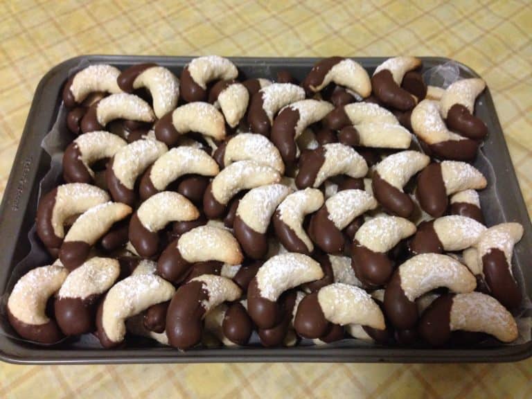 Zostawiamy do ostygnięcia na blasze (po upieczeniu są bardzo miękkie i kruche, wyglądają jak niedopieczone, ale niech Was to nie zmyli) i jeszcze ciepłe obtaczamy w cukrze pudrze wymieszanym z cukier waniliowy lub możemy zanurzyć je w polewie czekoladowej. Z tej porcji ciasta wychodzi około 50 bułek.