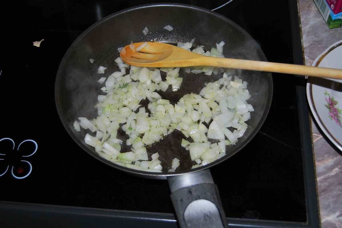 Farsz Na dużej patelni rozgrzej masło, a następnie dodaj cebulę. Smażyć cebulę, aż stanie się miękka.