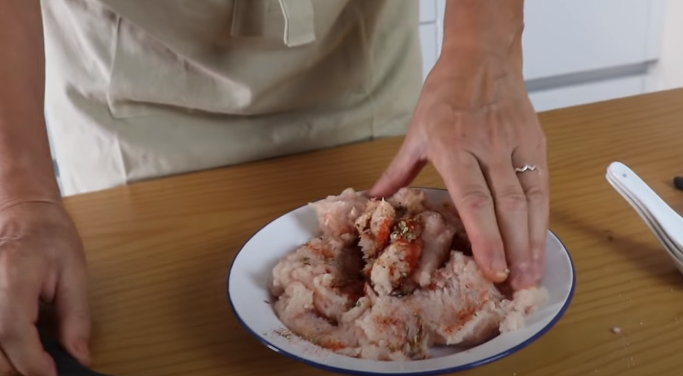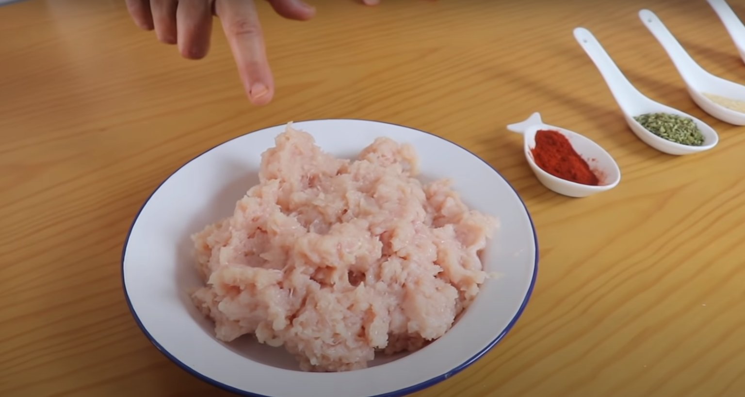 Zacznij od zmielenia piersi z kurczaka, a następnie umieść mięso w misce. Dosyp około łyżeczki soli, a po niej wsyp pozostałe przyprawy, za wyjątkiem papryki. Wszystko starannie wymieszaj.