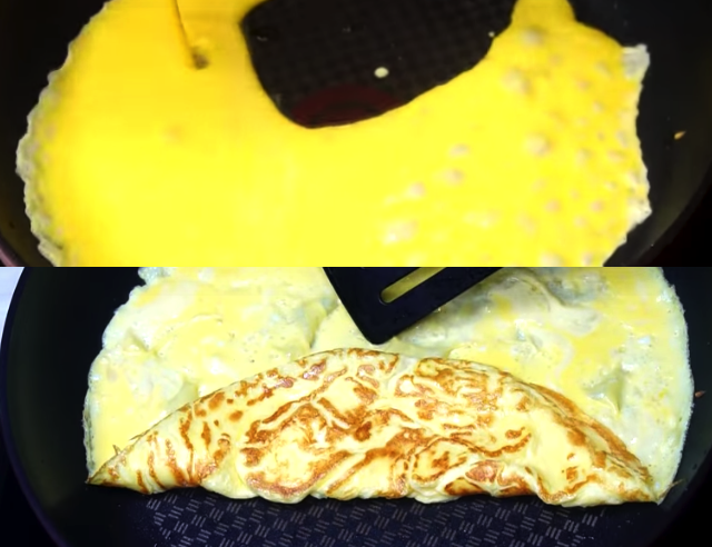 Do miski wbijamy 5 jajek, dodajemy 5 łyżek mleka, szczyptę soli, a następnie mieszamy przy użyciu trzepaczki. Patelnie smarujemy olejem i smażymy na niej naleśniki z jednej strony do momentu aż uzyskają złoty kolor. Z ciasta przygotowanego w ten sposób powinno wyjść 5 naleśników.