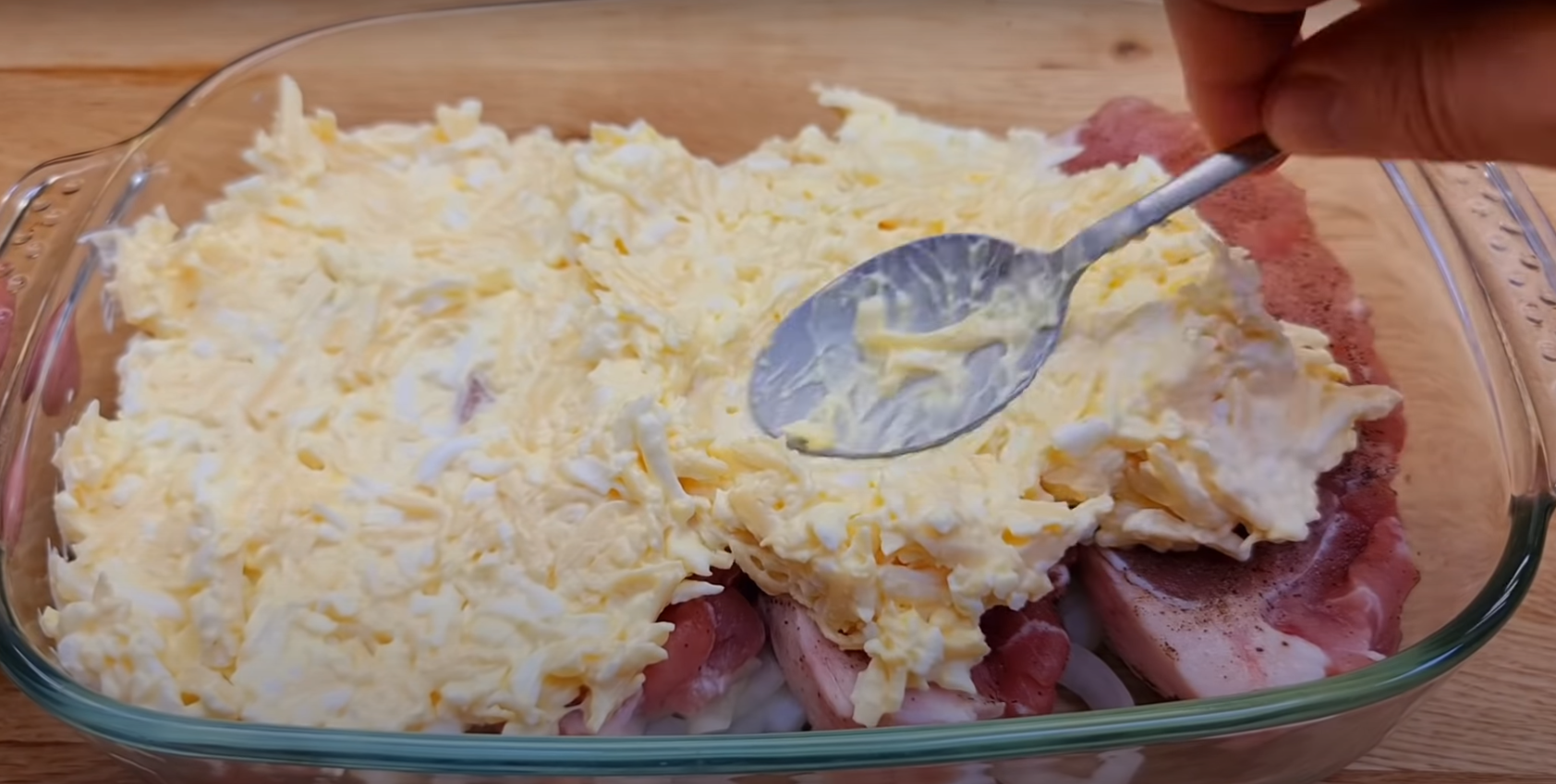 Wyjątkowo smaczny obiad. Schab, ser, jajko, cebula, majonez… Najpyszniejsze mięso jakie jadłam.