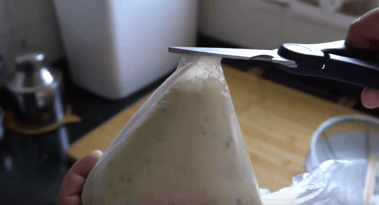 Wymieszaj powoli. Tak powstałe ciasto przełóż do woreczka foliowego. Na głęboką patelnię wlej olej, podgrzej.