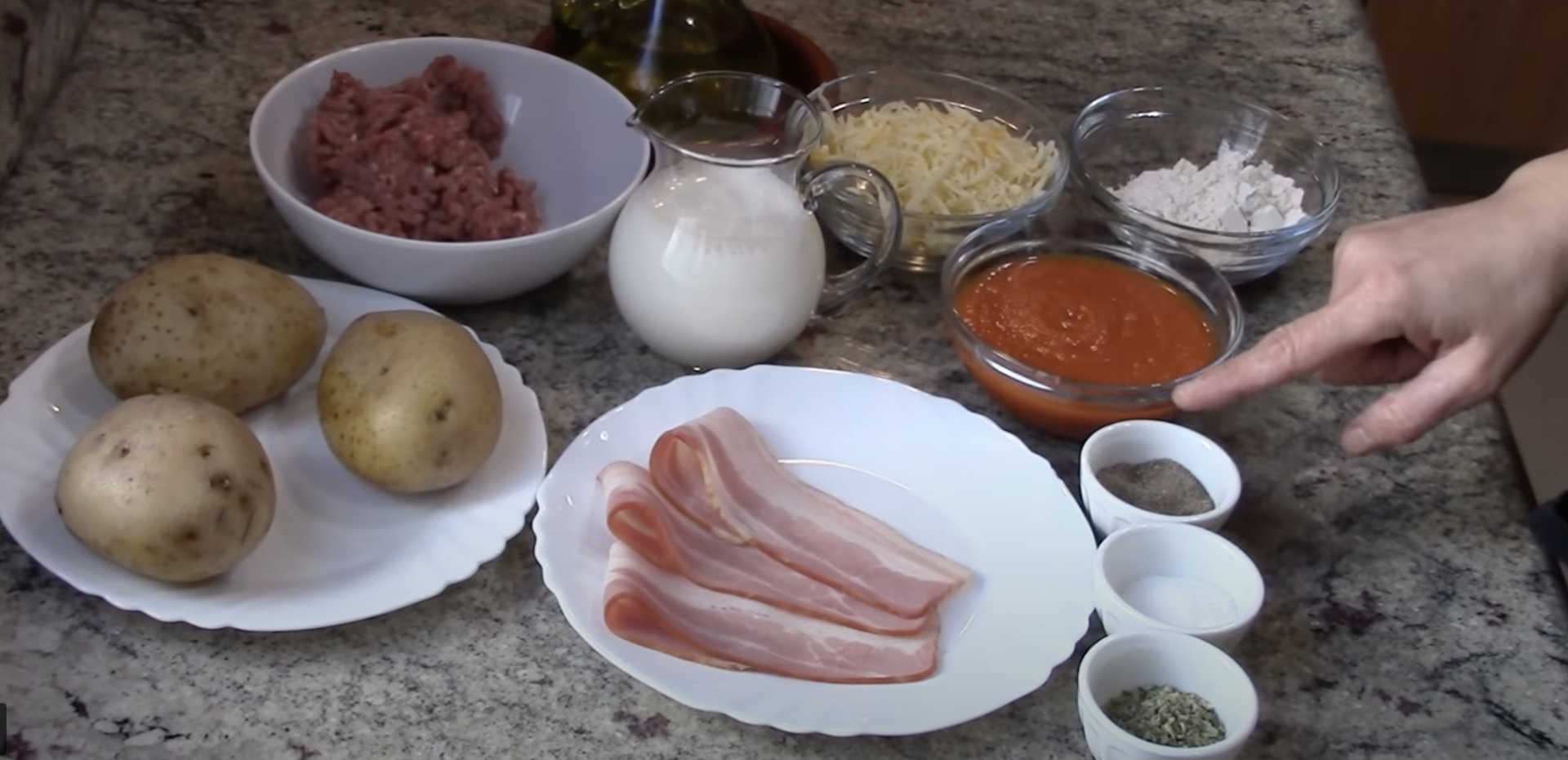 Pierwszym krokiem jest ugotowanie ziemniaków w całości. Następnie na patelnie wlewamy olej i smażymy na niej mięso mielone.